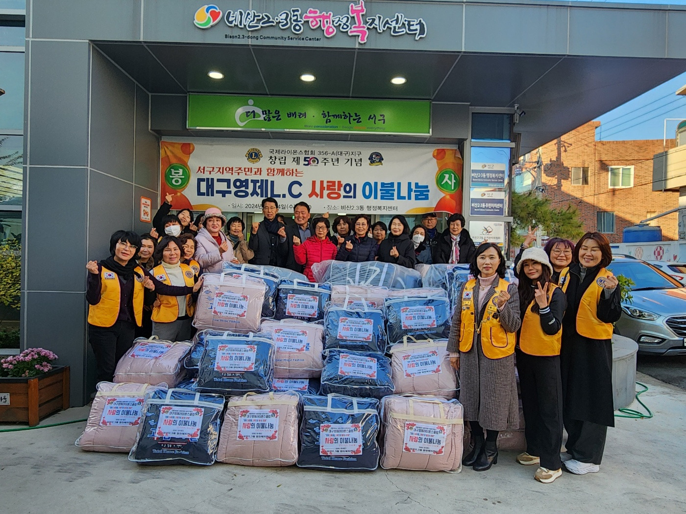 영제L.C 사랑의 이불나눔 봉사 356A지구 0 595 2025.03.10 15:01 <사랑의 이불나눔 봉사>일시 : 2024년 12월 4일(수) 15:00장소 : 비산2.3동 행정복지센터봉사사업 : 서구지역 저소득층 100가구에 이불 나눔