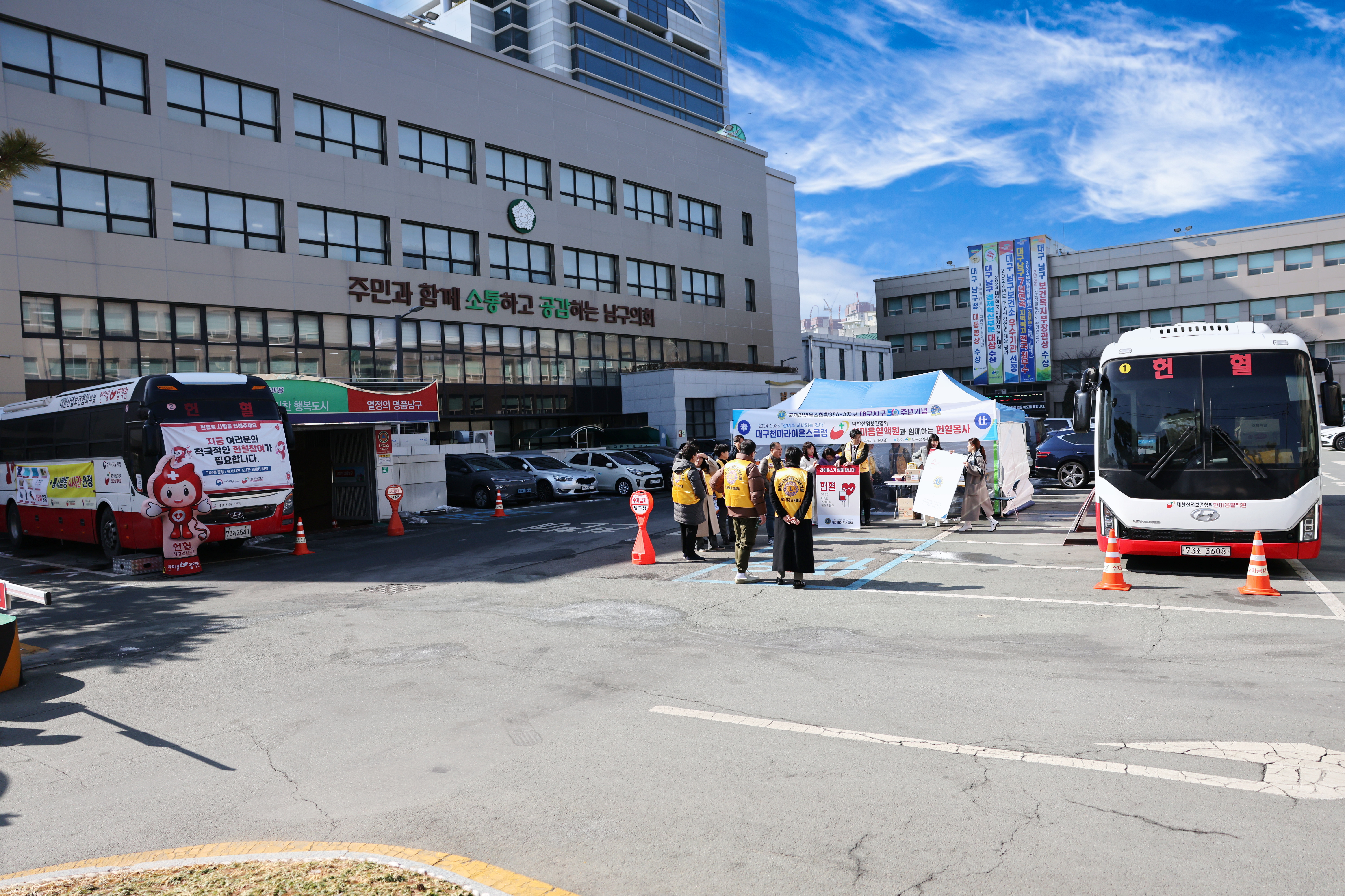 천마LC 헌혈봉사 356A지구 0 759 2025.03.10 15:54 ▶일시: 2025. 2. 14.(금) 오전 10시 ~ 오후 3시▶ 장소: 대구 남구청▶ 취재시간: 오전 11시 10분 ~ 12시 30분 점심이후 1시 ~ 1시 30분까지 취재▶ 기타: 1차 2024. 9. 20. 헌혈봉사시 버스 1대가 부족해서 2차 헌혈시는 2대로 진행 - 24일 "지구50주년 기념 2지역 합동헌혈 봉사"시 사진과 같이 헌혈자 하트피켓을 들고 촬영