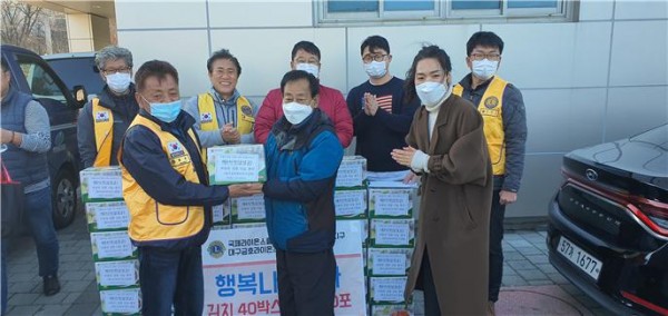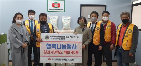 금호L.C 한국신장장애인대구협회 봉사물품 전달 356A지구 0 1035 2021.01.13 09:45 대구금호라이온스클럽(회장 김학종L)은 12월 3일 한국신장장애인대구협회를 방문하여 김장김치 5kg 41박스와 백미 10kg 40포를 전달하였다.