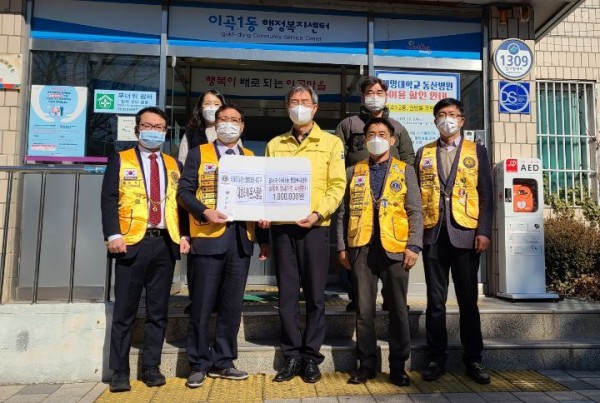 대호LC 저소득층 지원봉사 봉사금 전달 356A지구 0 954 2021.02.05 15:38 2021.2.3 달서구 이곡1동행정복지센타대구대호클럽(회장 이욱동L)에서는 설명절을 앞두고 달서구소재 이곡1동 행정복지센타를 방문하여 저소득가정에 전할 봉사금 일백만원을 전달하였다.
