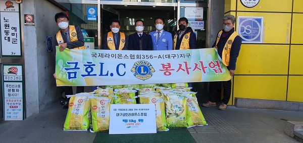 금호LC 노원동 백미전달봉사 356A지구 0 1416 2021.02.18 10:57 2021년 2월 8일금호라이온스클럽(회장 김학종L)에서는 8일 노원동 행정복지센터를 방문하여 백미10kg 50포를 전달하였습니다