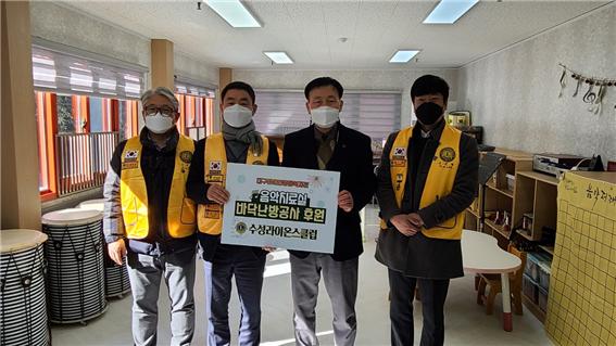 대구수성라이온스클럽에서는 (회장 최영태L) 2017년 2월 라이온스100주년 지역유산사업으로 대구장애인종합복지관 음악치료실을 설치하였습니다. 그후 2019년 9월 폭우로 인한 지붕붕괴로 인해 새롭게 리모델링공사를 하였고, 2020-2021년도 계속사업으로 바닥난방공사(총공사비 240만원)를 시행하여 지난 2021년 2월 8일 공사를 마무리하고 완공전달식을 개최하였다.