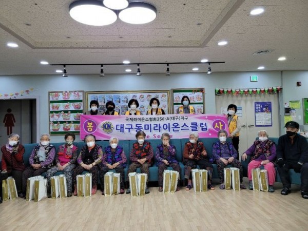 동미LC 금강재가복지센터 송년봉사활동 356A지구 0 1174 2021.02.05 15:42 대구동미클럽(회장 정경자L)에서는 송년봉사활동으로 달서구 장기동에 위치한 금강재가복지센타를 방문하여, 홀몸 어르신들께 봉사품을 전달하고 두시간여 동안 함께 말벗과 재롱?으로 즐거운 시간을 만들어 드렸다 .