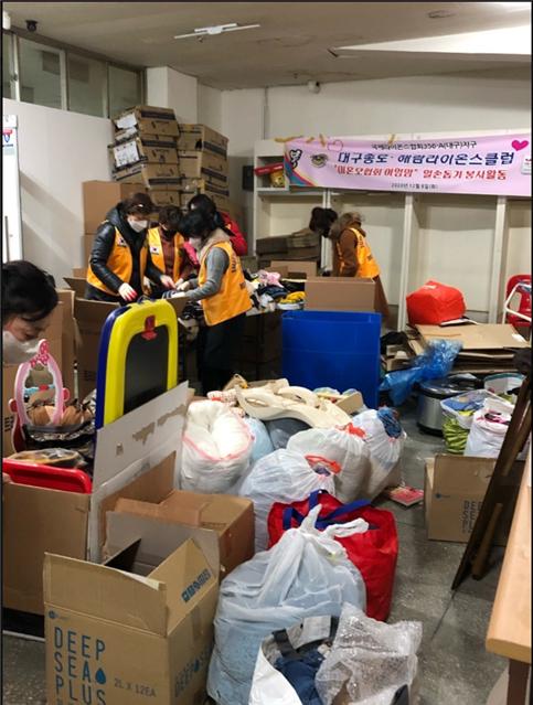 해람L.C & 종로L.C 미혼모협회 아임맘 일손돕기봉사 356A지구 0 1145 2021.01.13 09:39 종로클럽•해람클럽 합동 봉사 개최(미혼모협회 ‘아임맘’ 방문 - 창고정리 일손돕기 노력봉사)▣일시: 2020년 12월 8일(화) 오후1시~3시▣장소: 수성구 범어동 새범어아파트상가 창고1대구종로라이온스클럽(회장 박정훈L)과 대구해람라이온스클럽(회장 김잠숙L)은 지난 12월 8일 미혼모협회 아임맘에서 함께 미혼모들을 위한 키트를 200박스를 제작하였으며, 후원 들어온 의류 및 장난감 정리와 창고를 정리하며 일손돕기 봉사사업을 개최하였다.
