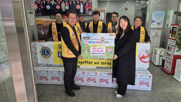 대한LC 설맞이 라면전달 봉사 356A지구 0 581 2025.01.17 10:07 대한클럽(회장 이준원L)은 1월 13일(월)설명절을 앞두고 자매결연단체 남구 대명6동 행정복지센터를 방문하여 사랑의 라면 80BOX 전달.