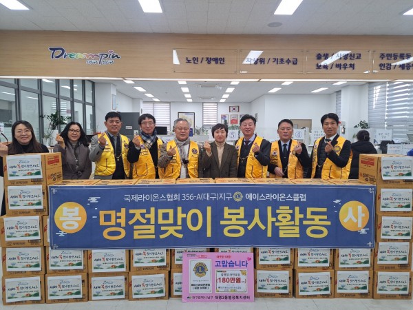 에이스LC 설명절봉사물품 전달 356A지구 0 600 2025.01.17 10:09 2025.1.13(월) 에이스클럽 회장(이옥환L)외 회원다수 참석하여 남구 대명3동 행정복지센터에따뜻한 설 연휴 보내시길 바라는 마음을 담아 라면 100박스 180만원 상당 봉사물품 전달하였다