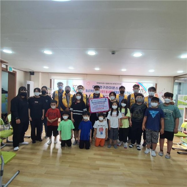 경구LC 동심지역아동센터 신발전달 356A지구 0 1269 2021.10.08 10:26 대구경구라이온스클럽(회장 서신교L) 봉사협약기관인 동심지역아동센터에 사랑의 신발(운동화)전달 봉사를 하였다. 동심지역아동센터 아동들의 건강한 성장에 도움을 주는 신발 구입 봉사금 240만원을 전달하고 아이들에게 감사의 손편지까지 받았다.