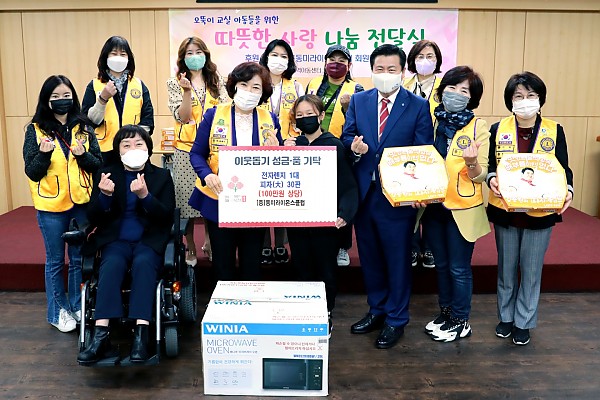 동미LC 남산복지관 피자나눔 및 물품 전달 봉사 356A지구 0 1023 2021.10.27 12:40 https://cafe.daum.net/LionsDaeguClubs/PF7b/1247 + 339 10월 25일 동미클럽에서는 정순애회장님을 비롯하여 회원들과 함께 엄마가 아이들을 생각하는 마음으로 사랑과 정성으로 피자를 직접 만들어 류규하 중구청장님과 남산복지관에 봉사 물품을 함께 전달 하였습니다~