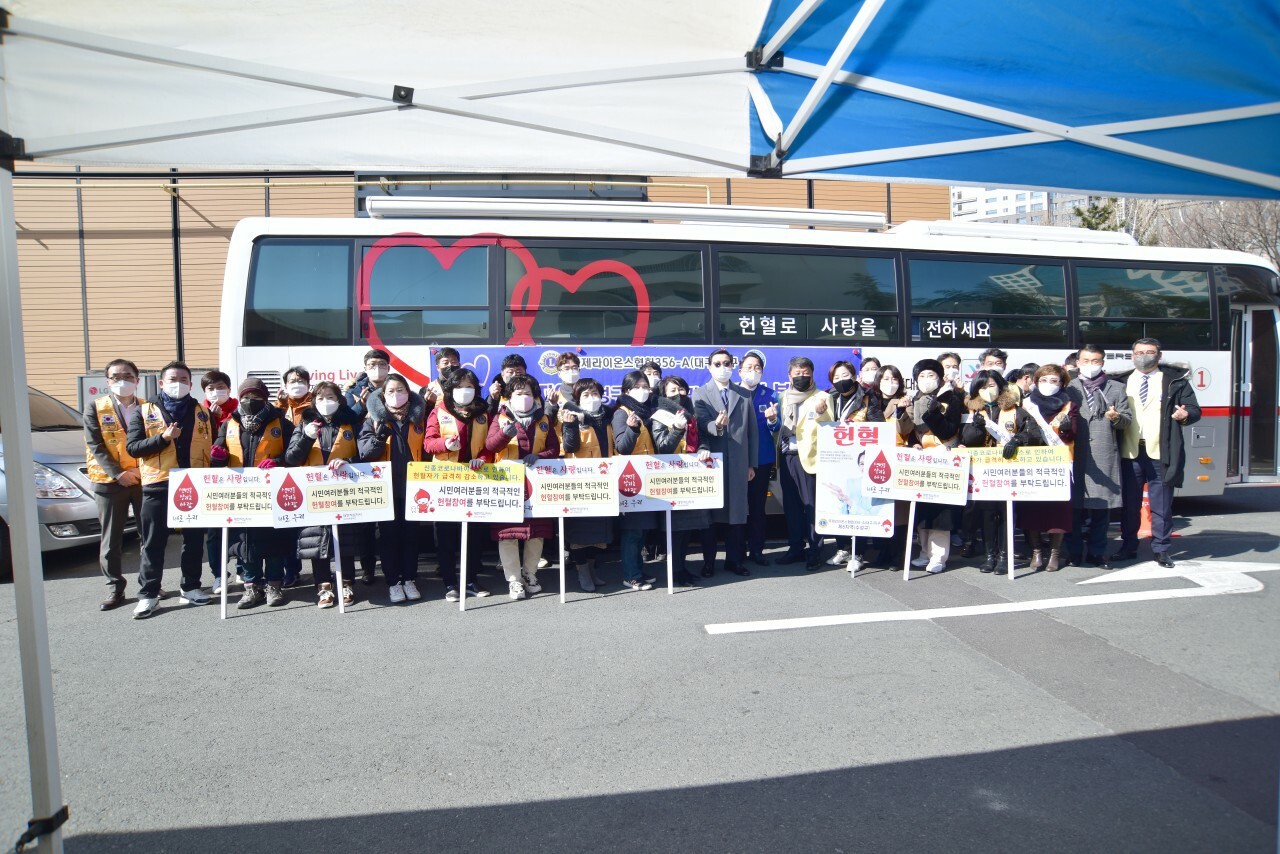 제6지역 (지역부총재 최주영L)헌혈 및 캠페인 봉사 356A지구 0 902 2022.03.04 13:32 https://cafe.daum.net/LionsDaeguClubs/RstG/563 + 303 제6지역(지역부총재 최주영L)은 지난 2월17일(목) 대구광역시 수성구청에서 합동 헌혈봉사 및 캠페인을 개최하여 코로나19로 혈액 수급에 비상을 겪는 혈액관리본부 대한적십자사에 조금의 보탬이 되었다.