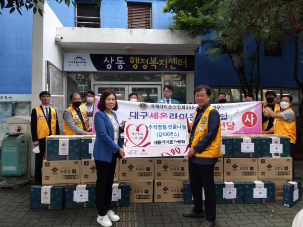 세온라이온스클럽 (회장 김동원L) 9월5일 상동주민센터 추석맞이봉사품 전달식