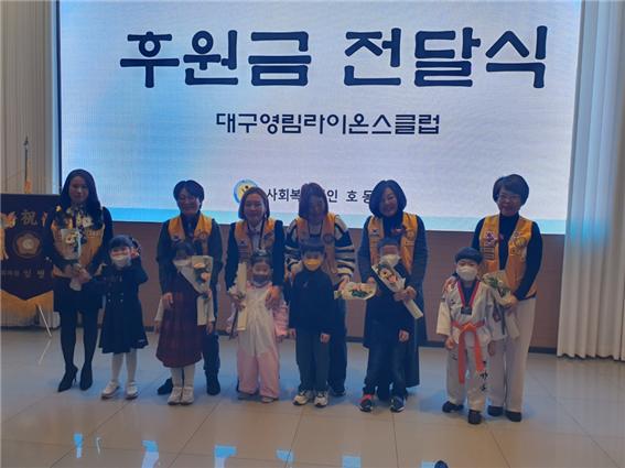대구영림라이온스클럽(회장:구정순)은 지난 12월 14일(수) 라테라스 웨딩에서 “호동 후원의 밤”을 개최하였으며, 당일 행사장 대관 및 200인분의 식대와 후원금 250만원을 전달하였다.