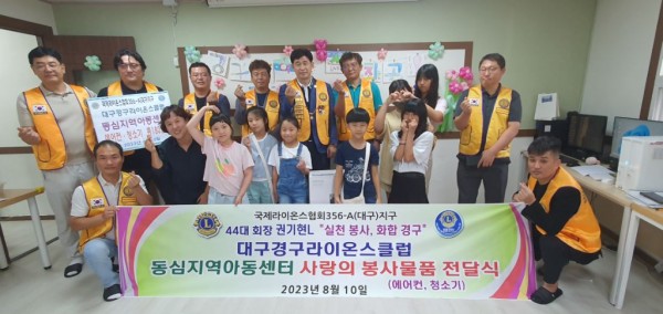 경구LC 동심지역아동센터 봉사물품 전달 356A지구 0 629 2023.08.11 09:10 경구클럽(회장 권기현L) 동심지역아동센터 봉사물품 전달(8월10일)에어컨 청소기 180만원